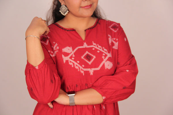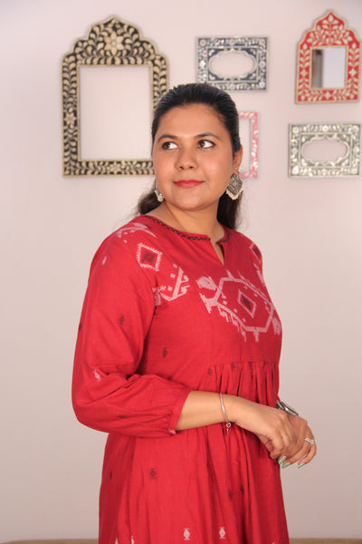 Graceful, flowy, and rooted in tradition — the Sufi Kurta is designed to bring timeless elegance to your everyday wardrobe. Crafted in soft woven cotton, it features delicate woven motifs and a beautifully gathered flare for that effortlessly flattering silhouette. The statement yoke with intricate detailing and subtle neckline makes it perfect for both everyday wear and special occasions. ✨ Details: 100% woven cotton Statement yoke with woven motifs Gathered flare for ease and movement 3/4th sleeves  Relaxed, flowy fit Ethically made in India 🌿 Style tip: Pair it with white straight pants and kolhapuris for a classic, elevated everyday...